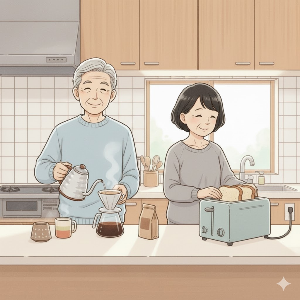 この穏やかな朝のリズムが、わたしたち夫婦の「幸せの形」になっている。
